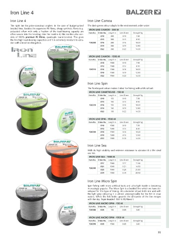 often woven into the braiding. Like the Ironline 8, this Ironline also con- item no. order no. Length m Line Ø mm Strength kg
