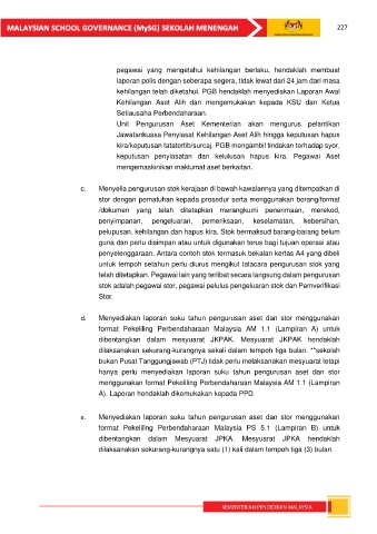 d. Menyediakan laporan suku tahun pengurusan aset dan stor menggunakan