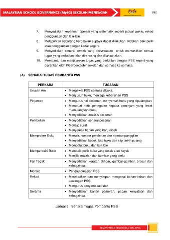 Jadual 6 : Senarai Tugas Pembantu PSS