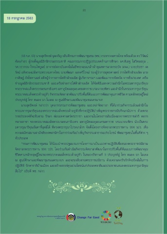“กรมการพัฒนาชุมชน ได้น้อมนาพระปฐมบรมราชโองการมาเป็นแนวทางปฏิบัติเพ่อสนองพระราชปณิธาน