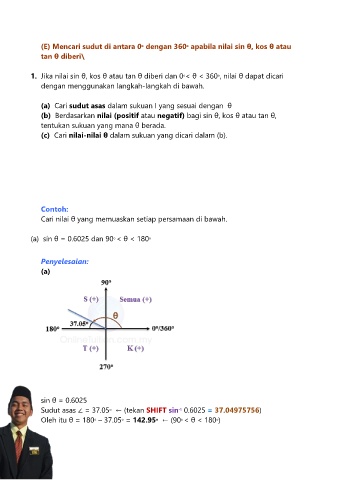 (E) Mencari sudut di antara 0 dengan 360 apabila nilai sin θ, kos θ atau