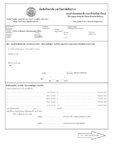สาขาวิชา หลักสูตรบริหารธุรกิจดุษฎีบัณฑิต (หลักสูตรนานาชาติ) แบบ 1.1 ที่อยู่ที่ติดต่อได้ Saint-Louis-Strasse 2, CH-4056 Basel, Switzerland