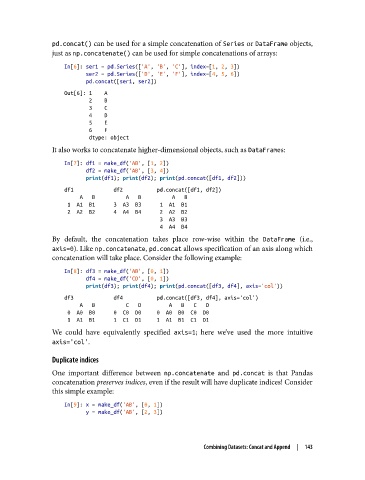 axis=0). Like np.concatenate, pd.concat allows specification of an axis along which