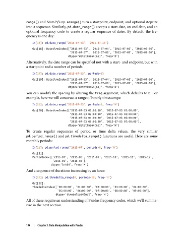 into a sequence. Similarly, pd.date_range() accepts a start date, an end date, and an