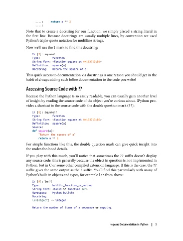 of insight by reading the source code of the object you’re curious about. IPython pro‐