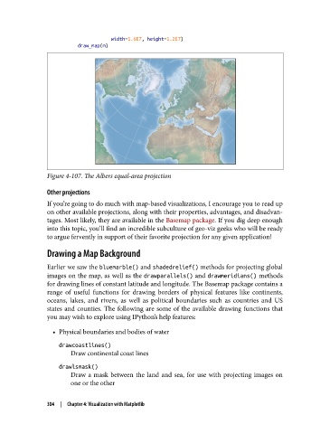 Earlier we saw the bluemarble() and shadedrelief() methods for projecting global