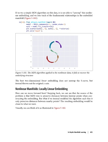 If we try a simple MDS algorithm on this data, it is not able to “unwrap” this nonlin‐