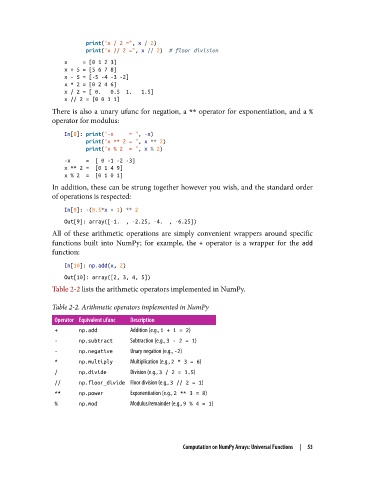 Table 2-2 lists the arithmetic operators implemented in NumPy.