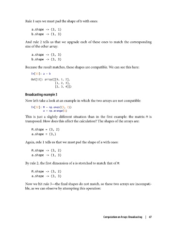 Again, rule 1 tells us that we must pad the shape of a with ones: