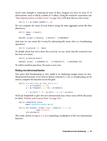 dimensional functions. If we want to define a function z = f(x, y), broadcasting can be