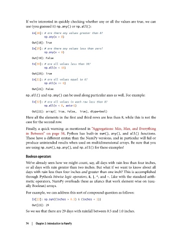 in Between” on page 58, Python has built-in sum(), any(), and all() functions.