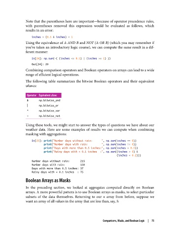 In[24]: np.sum(~( (inches <= 0.5) | (inches >= 1) ))
