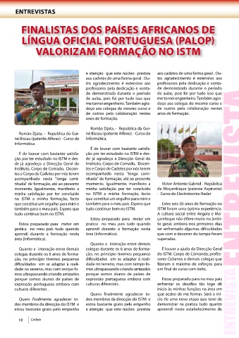 dos membros da direcção do ISTM e estou bastante grato pelo empenho demonstrar na pratica tudo quanto ENTREVISTA