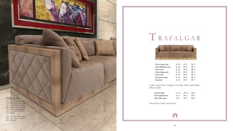 Leather, lacquered base, rectangular slim stirrup, backrest quilted pillows.