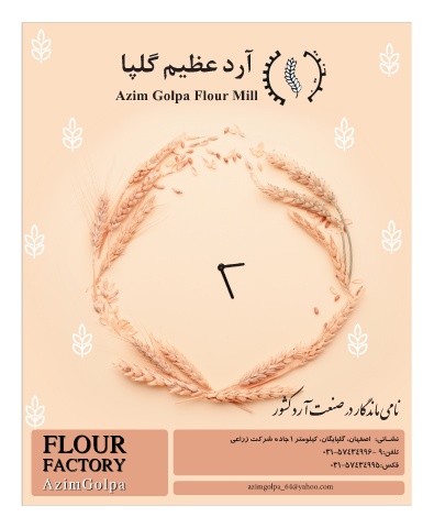 اپلگ میظع درآ Azim Golpa Flour Mill شک عنص م رو درآ ت در راگدنام ی نا FLOUR یعارز تکرش هداج 1 رتمولیک ،ناگیاپلگ ،ناهفصا :یناــشن 031-۵۷۴3۴۹۹۶- ۹:نفلت FACTORY 031-۵۷۴3۴۹۹۵:سکف AzimGolpa azimgolpa_64@yahoo.com