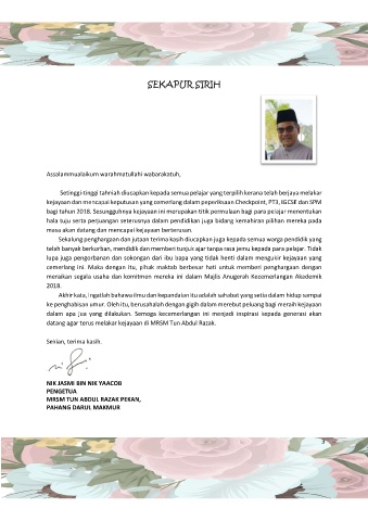 cemerlang ini. Maka dengan itu, pihak maktab berbesar hati untuk memberi penghargaan dengan