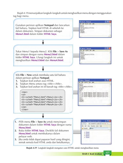 Rajah 4.19 Langkah-langkah mengatur cara HTML untuk menghasilkan menu