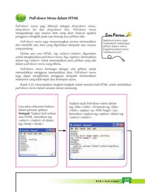 Notepad. Taipkan kod arahan Kemudian, taipkan tag <option> dalam tag
