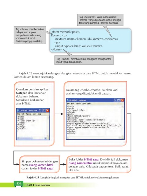 Rajah 4.23 Langkah-langkah mengatur cara HTML untuk meletakkan ruang komen