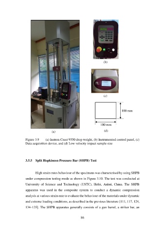 Data acquisition device, and (d) Low velocity impact sample size