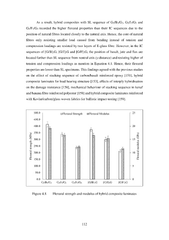 Figure 4.8 Flexural strength and modulus of hybrid composite laminates