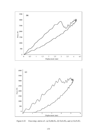 Figure 4.22 Force disp. curves of ; (a) G2/B3/G2, (b) G2/J3/G2, and (c) G2/F3/G2