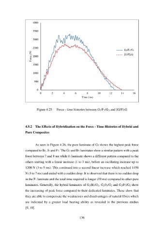 As seen in Figure 4.26, the pure laminate of G7 shows the highest peak force