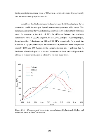 Figure 4.38 Comparison of stress-strain curves between E-glass/basalt, E-glass and