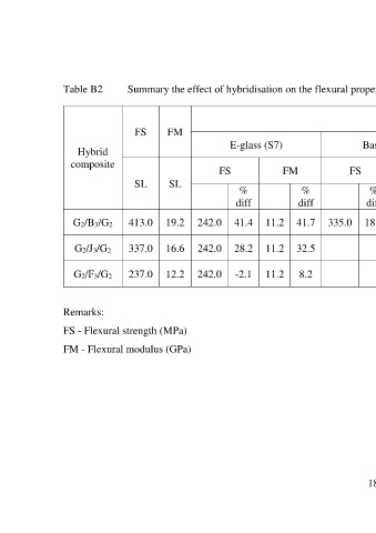 Table B2 Summary the effect of hybridisation on the flexural properties