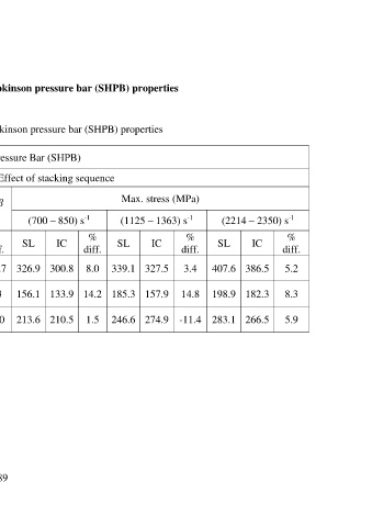 Table E1 Summary the effect of stacking sequence on the split Hopkinson pressure bar (SHPB) properties