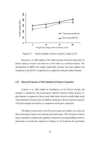 Figure 2.17 Tensile strength vs Kevlar content by weight (wt %)