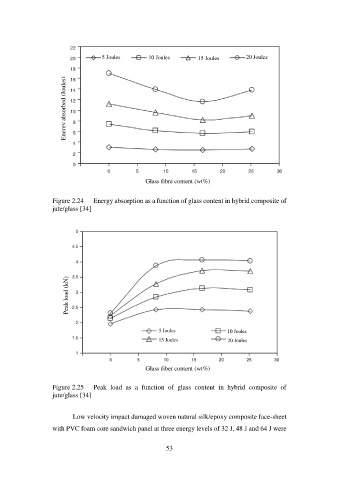 Figure 2.25 Peak load as a function of glass content in hybrid composite of