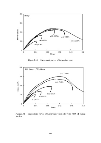 Figure 2.30 Stress-strain curves of hemp/vinyl ester