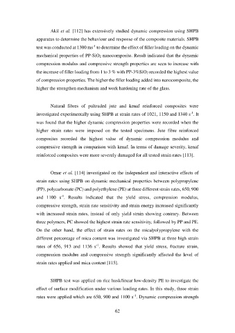 Akil et al. [112] has extensively studied dynamic compression using SHPB