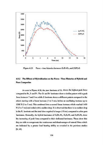 As seen in Figure 4.26, the pure laminate of G7 shows the highest peak force