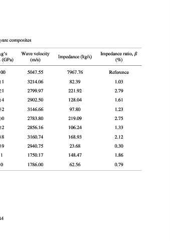 Table 4.8 Mechanical impedance of the Hopkinson bar, hybrid and pure composites
