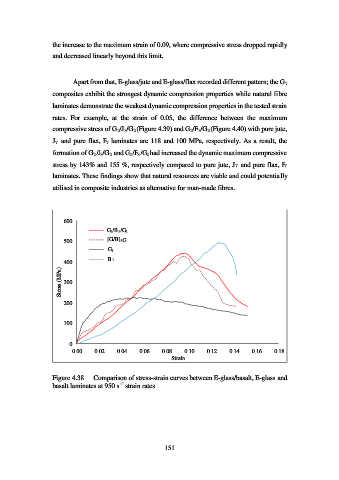 Figure 4.38 Comparison of stress-strain curves between E-glass/basalt, E-glass and