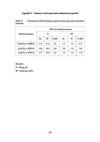 Table C1 Summary the effect of stacking sequence on the quasi-static indentation