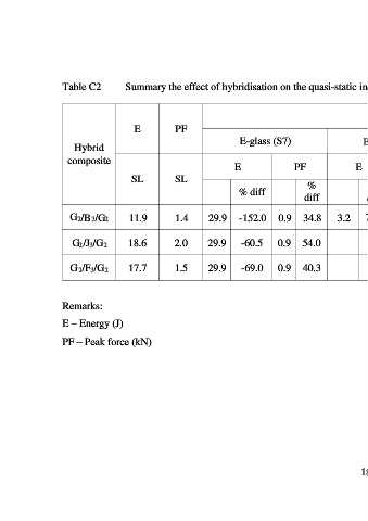 Table C2 Summary the effect of hybridisation on the quasi-static indentation properties