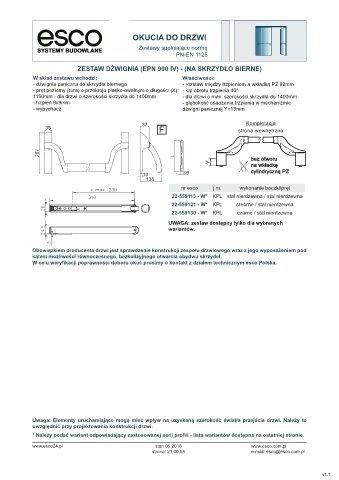 W celu weryfi kacji poprawności doboru okuć prosimy o kontakt z działem technicznym esco Polska.