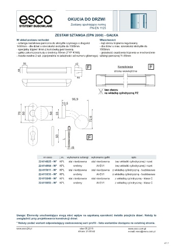 nr esco j.m. wykonanie sztangi wykonanie gałki opis