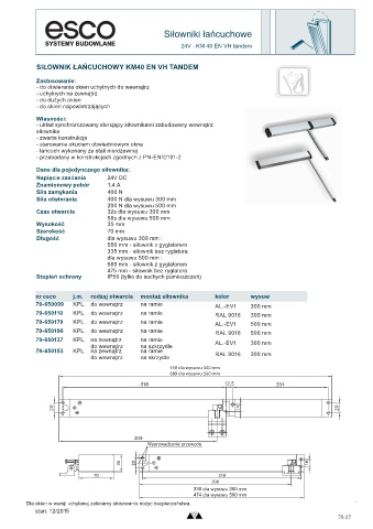 nr esco j.m. rodzaj otwarcia montaż siłownika kolor wysuw