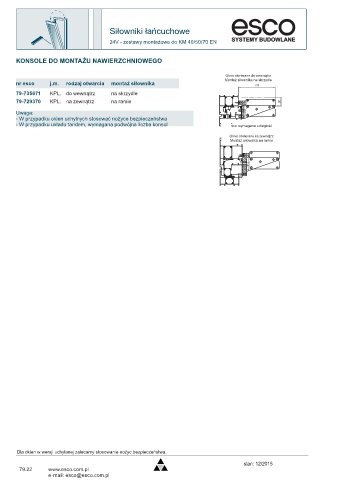 nr esco j.m. rodzaj otwarcia PRQWDĪ VLáRZQLND Montaż siłownika na skrzydle