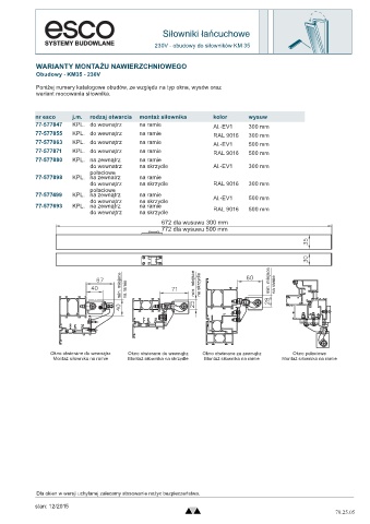 nr esco j.m. rodzaj otwarcia montaż siłownika kolor wysuw
