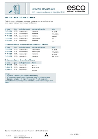 szczegółowych informacji prosimy o kontakt z działem technicznym esco