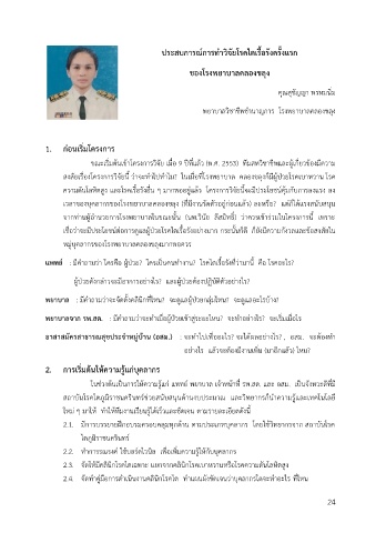 จากท่านผู้อำนวยการโรงพยาบาลในขณะนั้น (นพ.วินัย ลีสมิทธิ์) ว่าควรเข้าร่วมในโครงการนี้ เพราะ