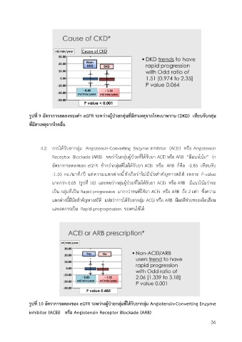 มากกว่า 0.05 (รูปที่ 10) และพบว่ากลุ่มผู้ป่วยที่ไม่ได้รับยา ACEi หรือ ARB มีแนวโน้มว่าจะ