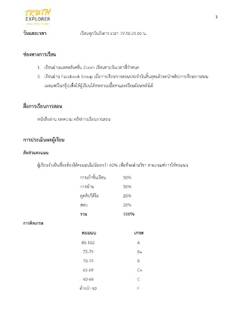 ผู้เรียนจำเป็นที่จะต้องได้คะแนนไม่น้อยกว่า 60% เพื่อที่จะผ่านวิชา ตามเกณฑ์การให้คะแนน
