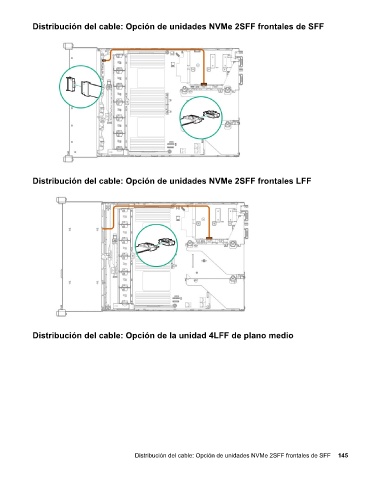 Distribución del cable: Opción de unidades NVMe 2SFF frontales de SFF 145