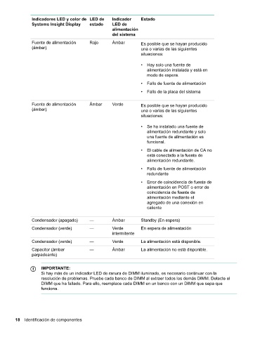 Indicadores LED y color de LED de Indicador Estado